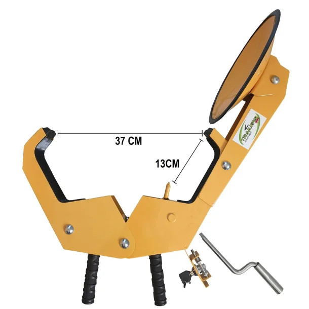 Puis à l’aide d’une petite manivelle amovible, vous serrez/desserrez l’étau sur laroue/jante