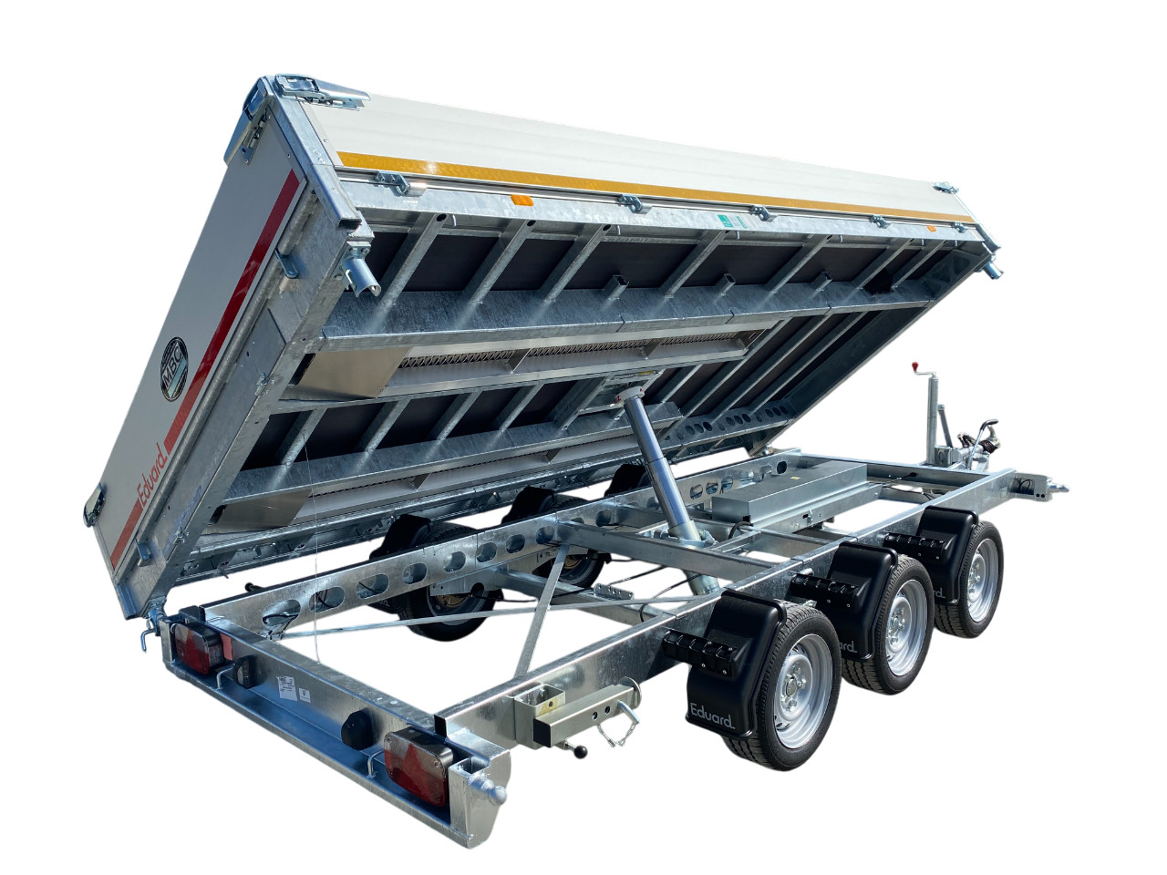 Remorque tri‑benne Eduard 4020 – version électrique, rampes intégrées, double/triple essieu freiné 3 500 kg