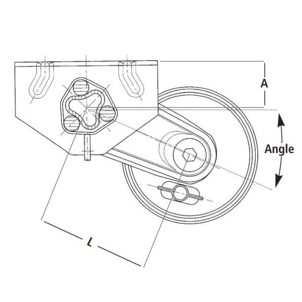 PTAC : 1800 KG Perçage : 5x112 Roulements : Cartouche Corps : 110 mm 6 pans EAB Mini / Maxi : 900 à 1700 mm Angle : 25° Hauteur de la platine (A : 75 mm Longueur du bras (L) : 175 mm Dimensions platine de fixation (B) : 270x70 mm Entraxe platine de fixation (B) : 220 mm (2 trous) Déport : 250 mm Poids : 81 kg INFO : Préciser la côte E.A.B. à la commande Livré : Sans câble