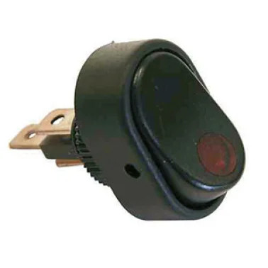 Interrupteur noir avec une LED rouge qui s'allume lorsque l'interrupteur est en marche