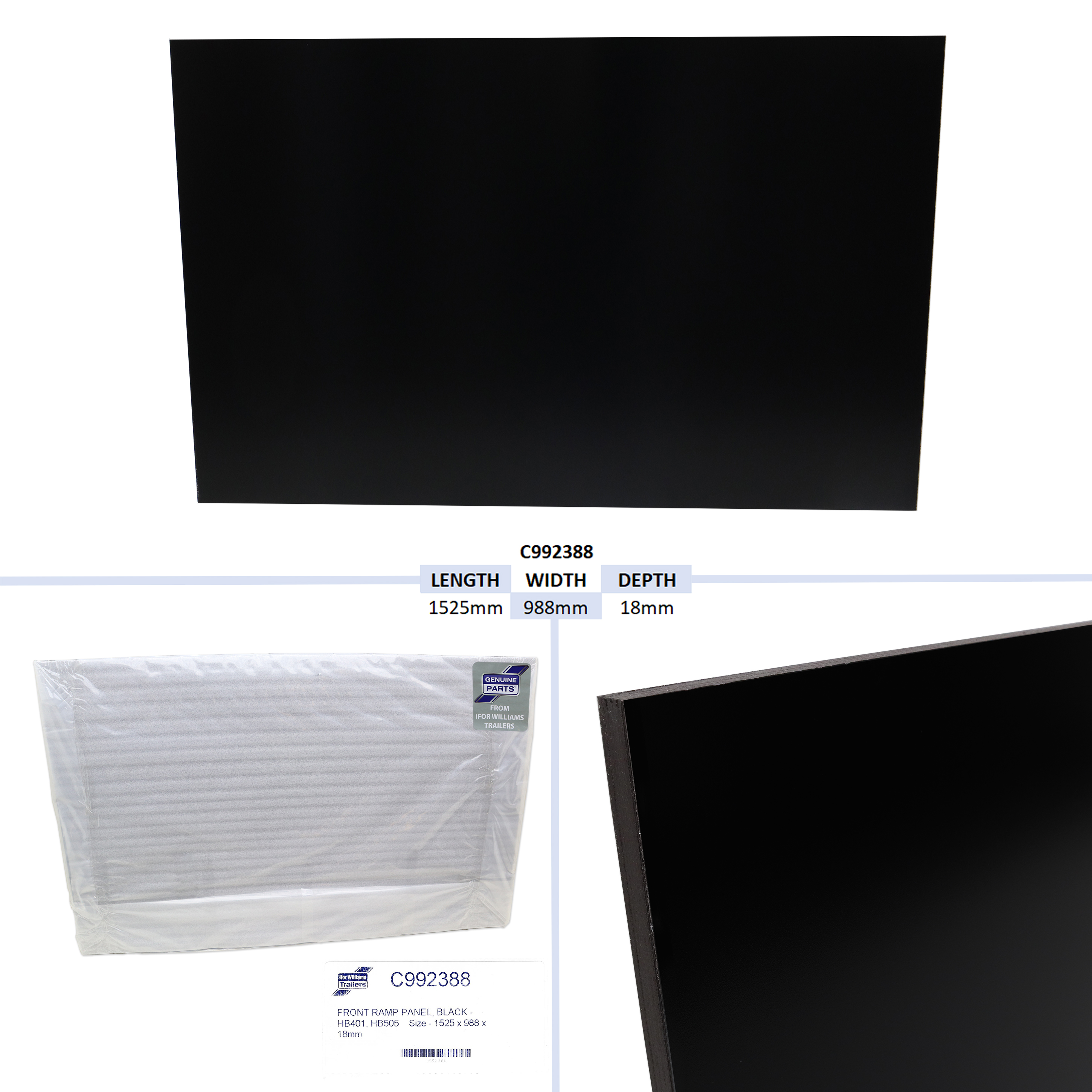 • PANNEAU DE RAMPE AVANT, NOIR - HB401, HB505 TAILLE - 1525 X 988 X 18MM